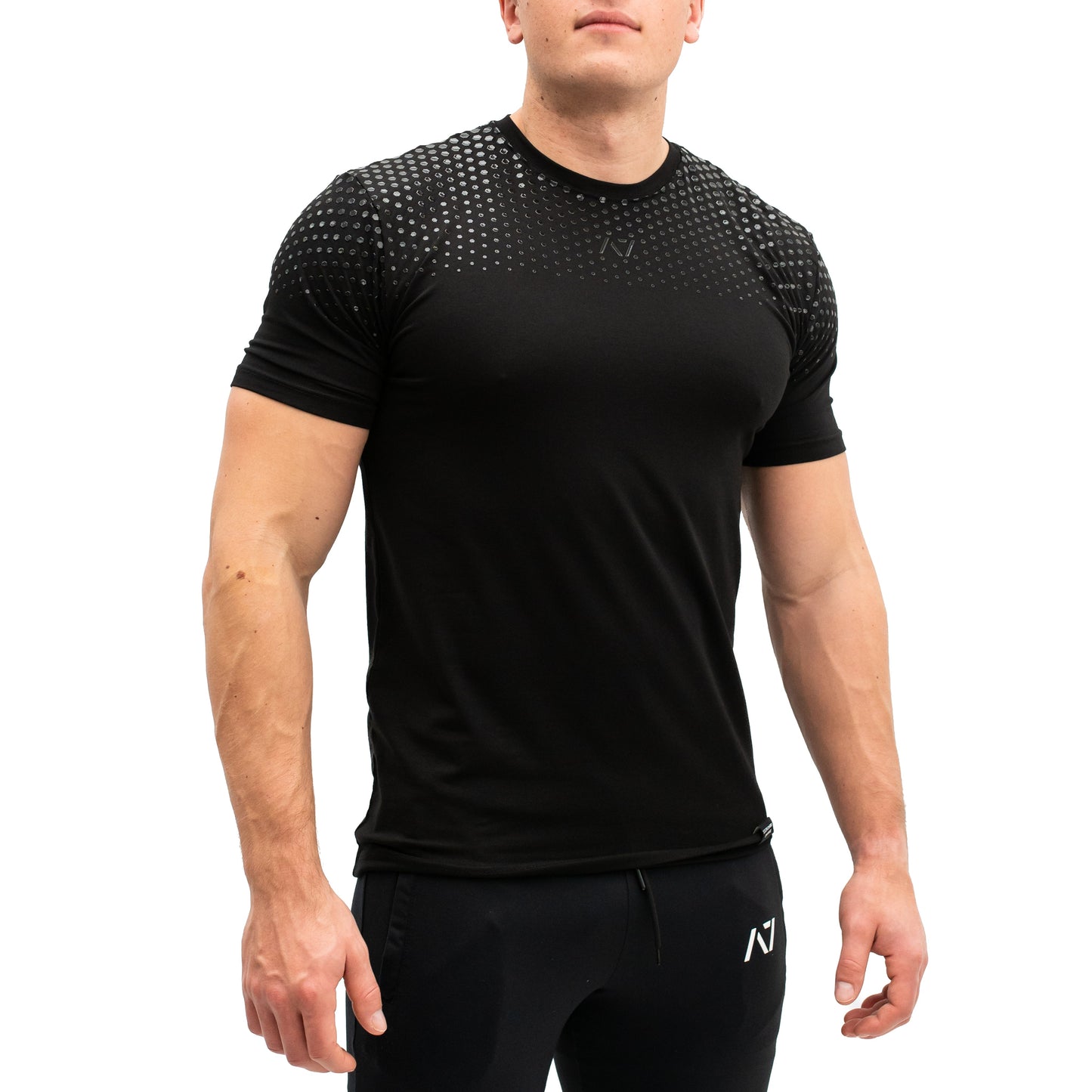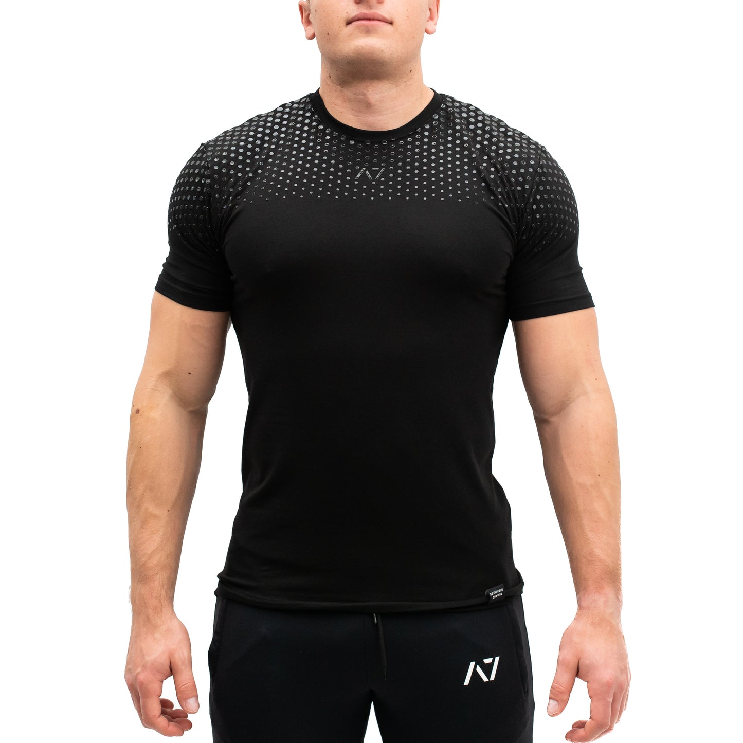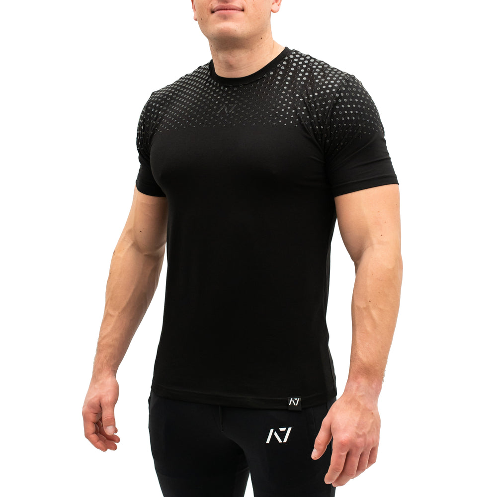 A7 Bar Grip is a one-of-a-kind performance shirt with a patent-pending silicone grip on the back that is designed to help with slippery commercial benches and bars. The grip helps you stick to the bench during bench press and anchors the barbell to your back when squatting. Bar Grip is the ultimate training shirt for powerlifting, strongman and weightlifting workouts.