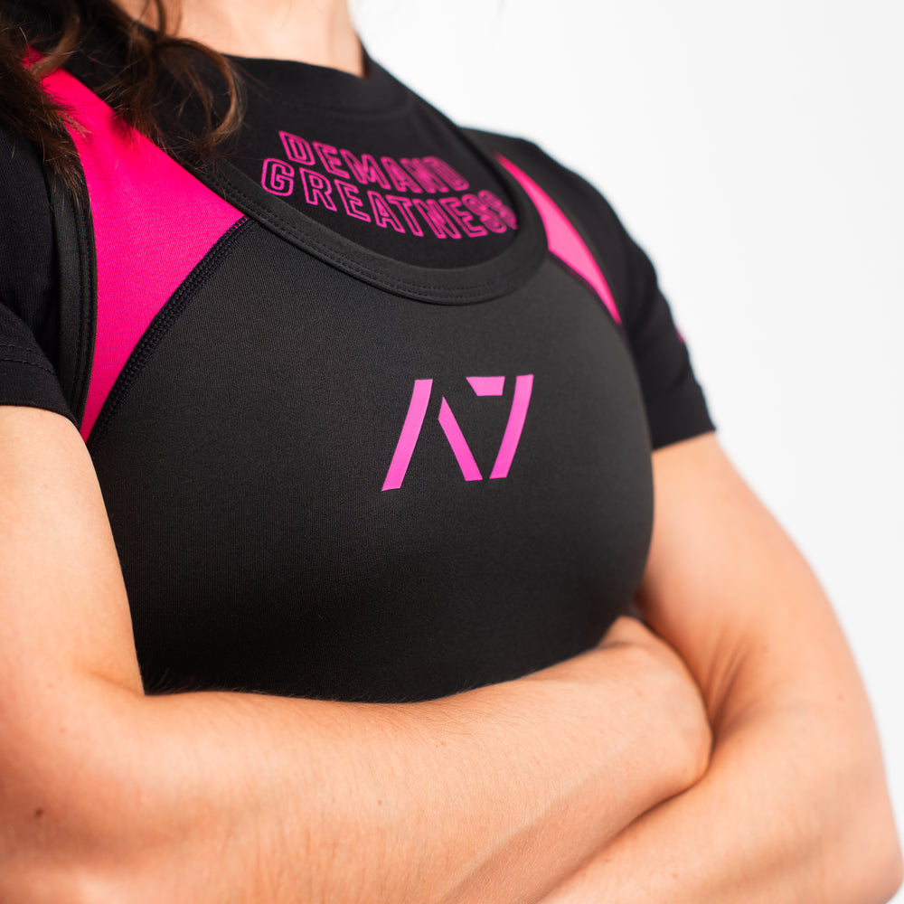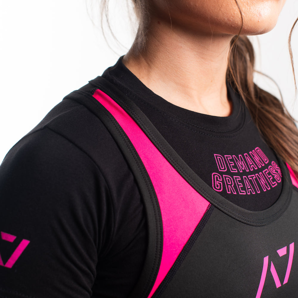 Luno In Latin, Luno means curve or shape into a crescent. Our Luno singlets are designed for the strength and the curves of an athlete. Our Luno singlet features a new racerback design for extra lat mobility, side panel stitching to help visually guide the squat depth level and curved panel design for a slimming look. The new Women's cut features a more tapered waist and additional quad room to fit all the strength and beauty.